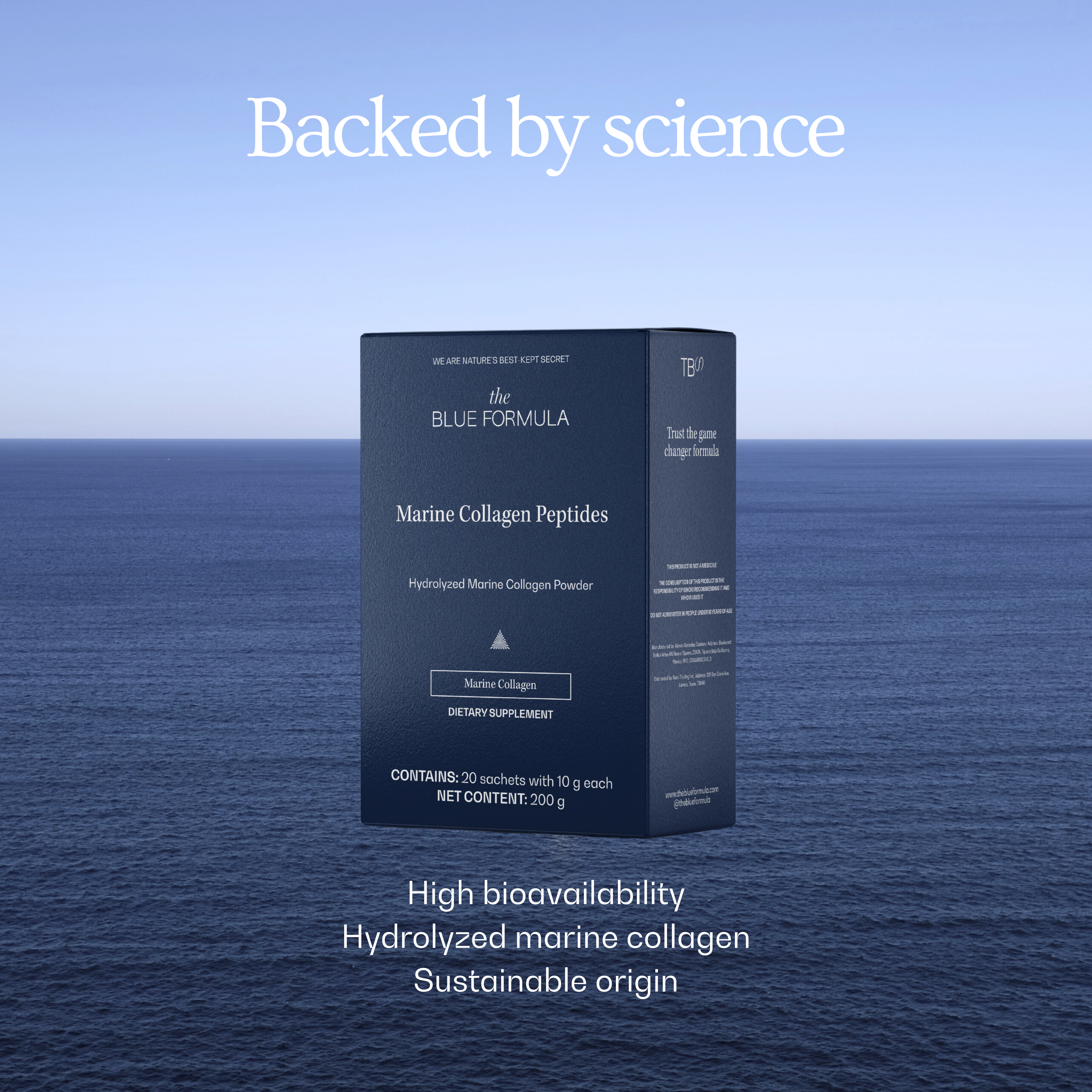 • Colágeno marino hidrolizado en péptidos de bajo peso molecular, estudiado por un instituto de investigación en México, que comprobó que el cuerpo lo utiliza de forma muy eficiente.