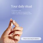 Las cápsulas están pensadas para complementar nuestros colágenos en polvo y skincare, creando una rutina de bienestar que se adapta a tu vida real.